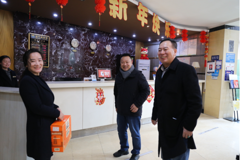 2024年1月31日下午,龙年春节即将到来之际,伟德国际1946副校长舒红平带队,伟德国际1946,Bevictor伟德,伟德官网董事长兼总经理宫冠英、副总经理李浩麟、副总经理刘晓阳、党支部书记管廷岩、办公室主任刘小莉、物业部部长张迅等同志共同为新气象宾馆一线员工送去新春祝福和诚挚问候。